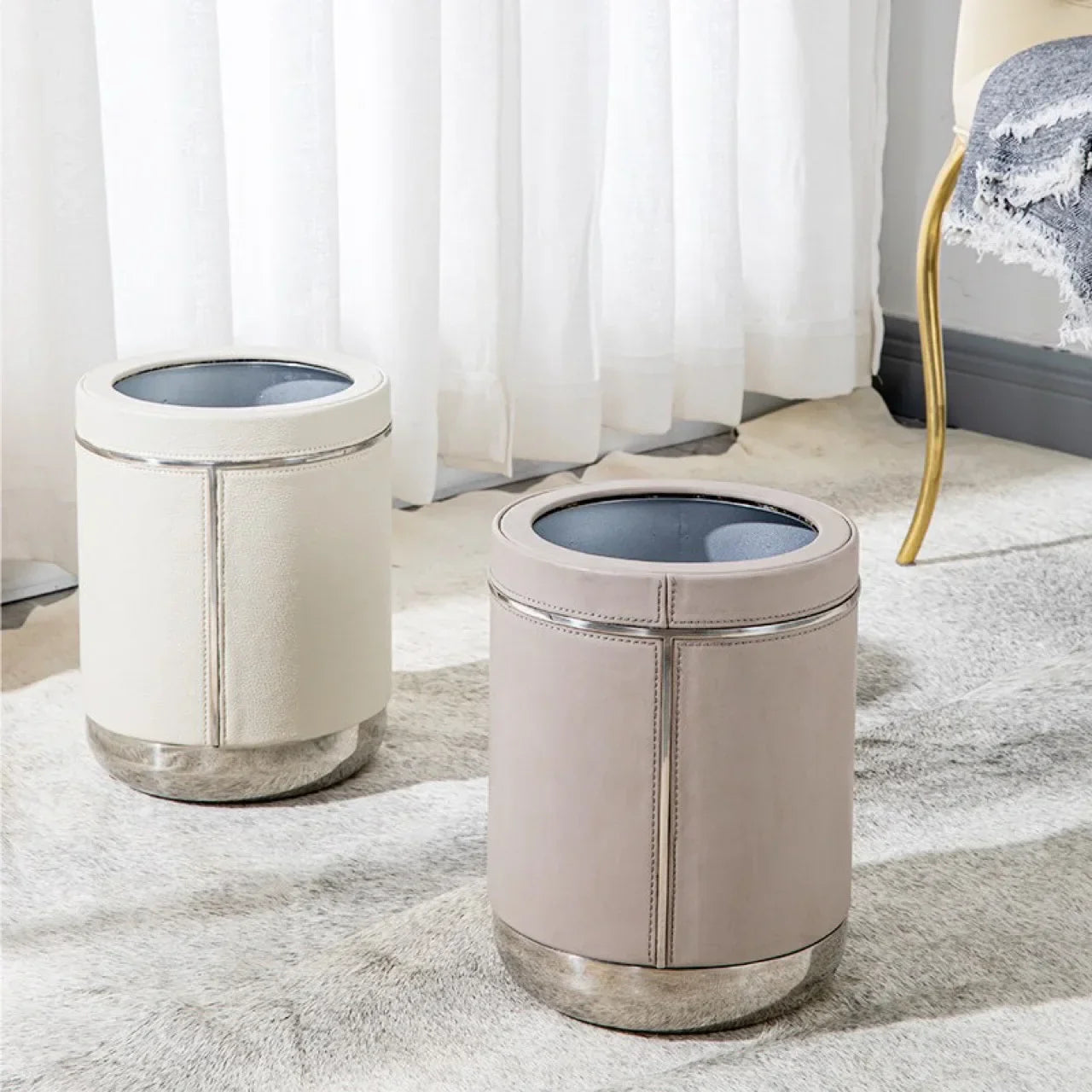 Elegancki Kosz na Śmieci ze Stali Nierdzewnej i Skóry
