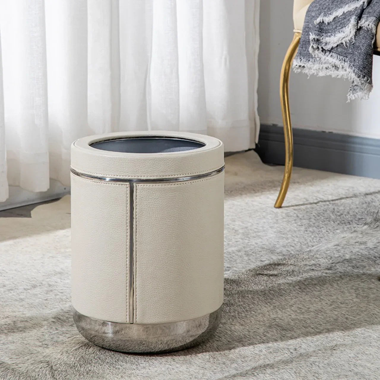 Dzięki dużej pojemności, okrągły kosz na śmieci został zaprojektowany z myślą o łatwym przechowywaniu wszystkich Twoich odpadów. Stabilna konstrukcja umożliwia łatwy dostęp, a elegancki skórzany wygląd dodaje szyku jego designowi.