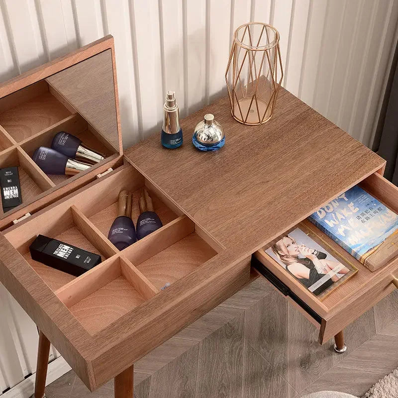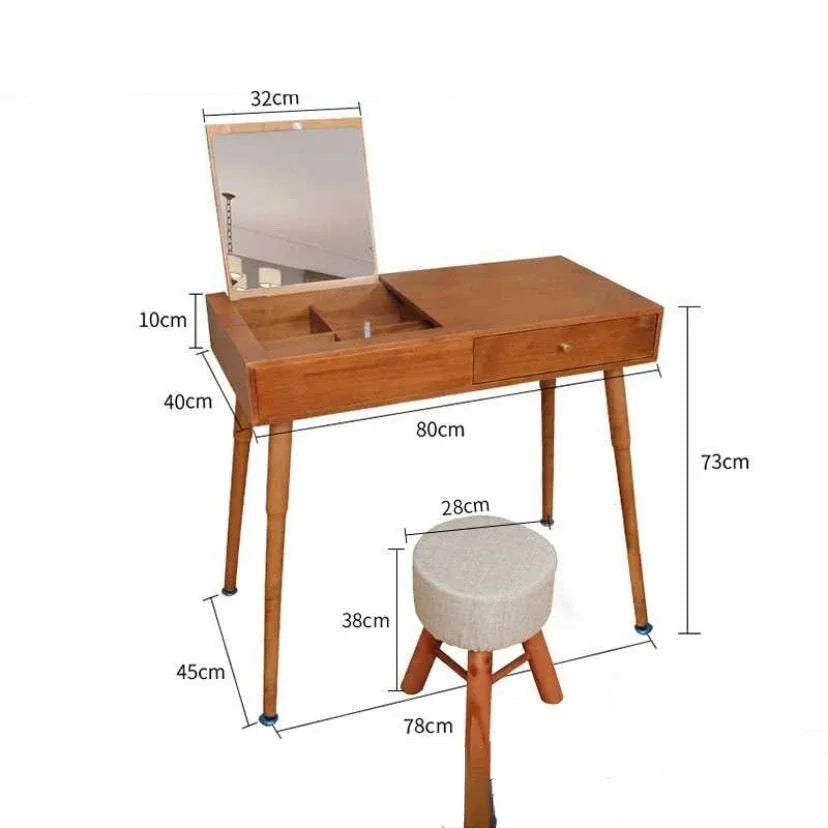Toaletka z Litego Drewna z Lusterkiem Składanym i Szufladami